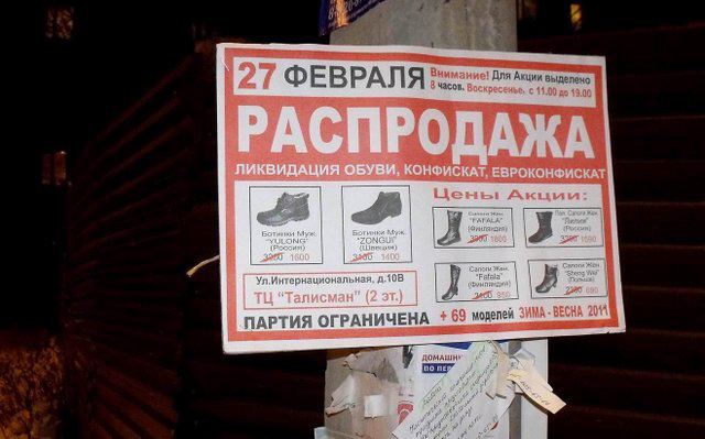 В эти выходные на остановках рязанского микрорайона Канищево развешали объявления, что в воскресенье в "Талисмане" состоится очередная распродажа конфиската.