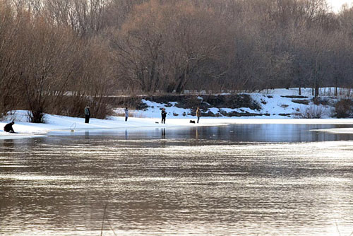 В длинных, тянущихся вдоль обоих берегов промоинах рыбачат спиннингисты. Щука сейчас идет к местам нереста. Она голодная и слегка "неадекватная". Как спросонья. Самое популярное место – .