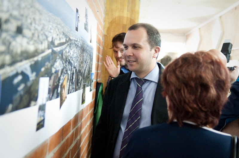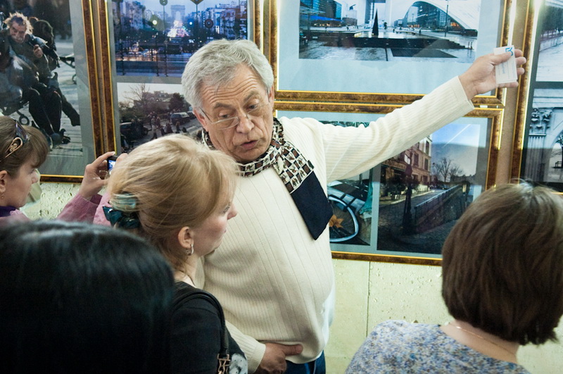 Амели Пулен и Андрей Павлушин явно ходят одними дорогами. Посмотрите налево — перед вами Нотр-Дам де Пари, обернитесь направо — мы как раз проходим мимо уличного жонглёра, обратите внимание, как много в Париже голубей и как улыбаются друг другу подружки за соседним столиком в кафе. Эффекту присутствия способствовала и живая французская речь — экскурсия дублировалась на французском языке: кто знает, может, парижане тоже захотят услышать, что там рассказывает про них этот скромный голубоглазый человек с большим фотоаппаратом в руках? Колорита происходящему придавала и музыка ансамбля «Feelin`s», превратившегося на время открытия в взаправдашних уличных музыкантов из французской столицы. Главной фишкой экскурсии стало посещение Эйфелевой башни: на выставке представлена четырёхметровая панорама Парижа из 28 кадров с инсталлированными в неё фотографиями — тот вид, который открывается взгляду туриста с высоты главной местной достопримечательности.