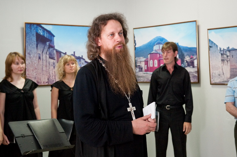 Выставка «Гора Афон — сияние святынь» была организована Русским Афонским обществом, комитетом по культуре правительства Москвы, общественным советом Центрального федерального округа и Фондом святых равноапостольных Константина и Елены и в начале июня с аншлагом была показана в столице. В Рязани интерес к христианским святыням оказался умеренным. Как посетовал на открытии выставки игумен Лука, заведующий кафедрой теологии Рязанского государственного университета и директор православной гимназии, громкий интерес среди рязанцев вызывает лишь скандальная тематика. Так что вернисаж прошёл в довольно тесном кругу, зато под духовную музыку — на открытии выступил хор отделения теологии под руководством Константина Михайлова.