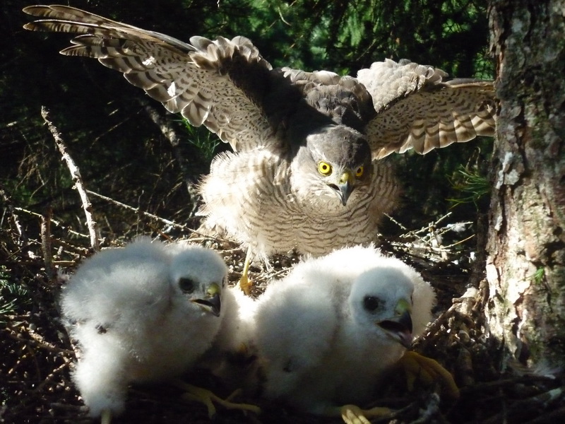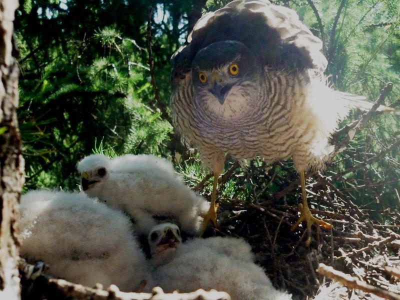 Съёмочная пора для орнитолога в этом году явно задалась. Гнездо ястреба-перепелятника в канищевской посадке он обнаружил ещё в 1998 году, но птица решилась увеличить семью на рязанской территории лишь летом 2011-го. Правда, семейной паре пришлось пережить страшную трагедию — первое гнездо с потомством разорили вороны. Но уже к началу июня Антон Барановский смог порадоваться за семейную пару, обнаружив невозмутимую мамашу с четырьмя подопечными.