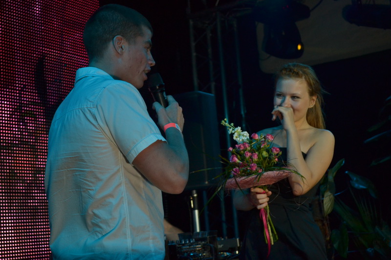 А потом на сцену вышли четыре девушки, два юноши и одна пара — они стали самыми красивыми людьми вечера по версии цветочного магазина «Магнолия», чей директор Светлана Матыцына лично вручила девушкам авторские букеты, которые во время вечеринки сама и смастерила. Также победители получили дисконтные карты магазина. Паре же была предоставлена особая роль: ведущий с заговорщическим блеском в глазах объявил «А сейчас мы их поженим!». Зал взорвался аплодисментами — женская половина была искренне рада за новоиспечённую невесту, а мужчины, видимо, ликовали от того, что не они на месте растерянного жениха. Далее следовало одно из необычайнейших объяснений в любви: молодой человек, признаваясь девушке, сказал, что его любовь к ней такая же вечная, как любовь Тайсона к боксу. Апофеозом вчера стал поцелуй влюблённых под звонкое «Горько!».