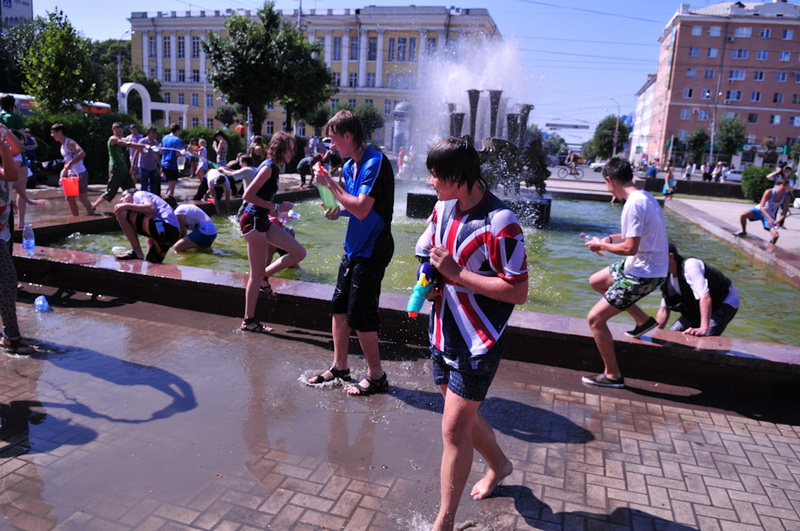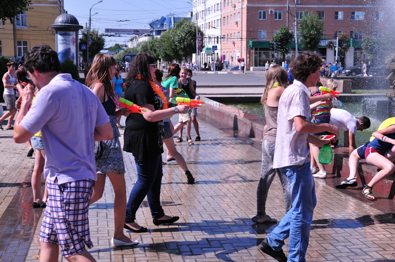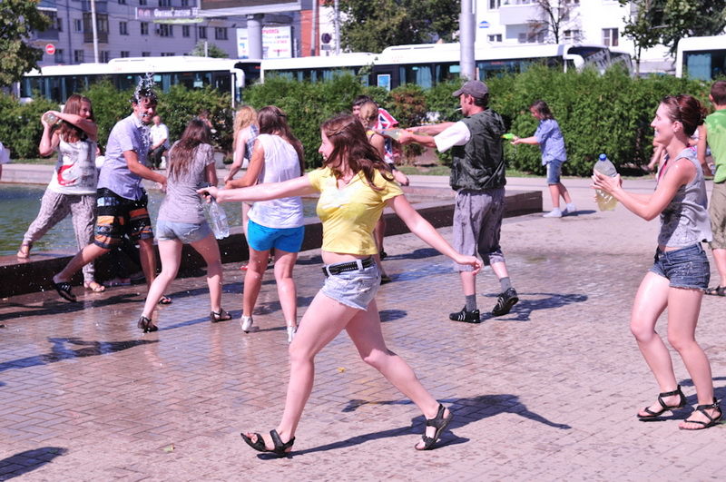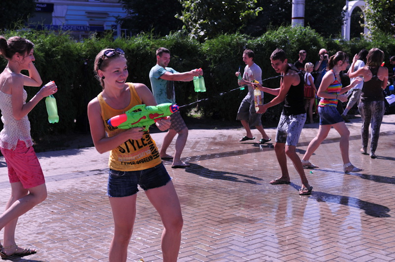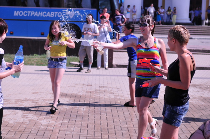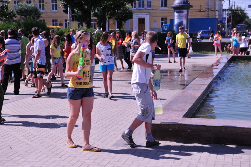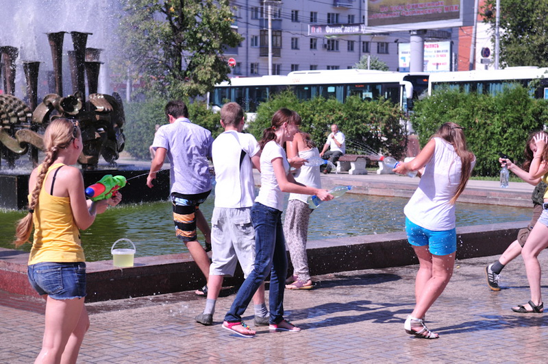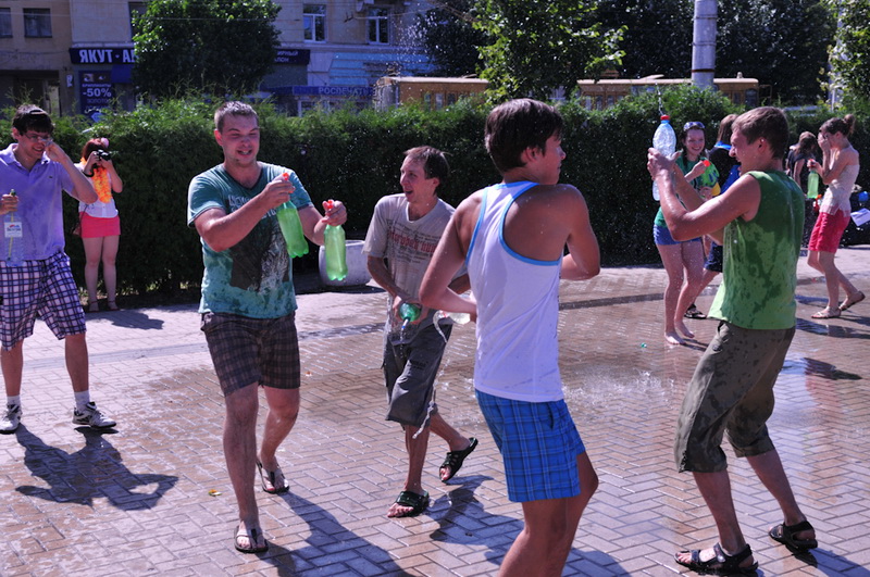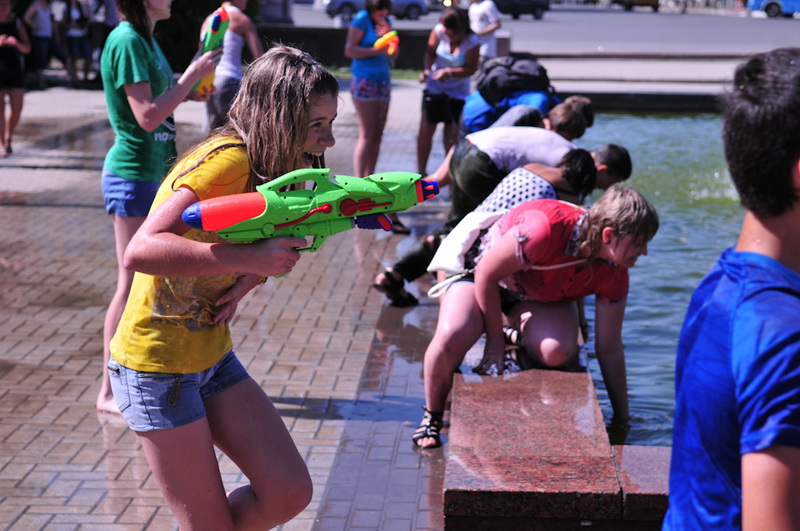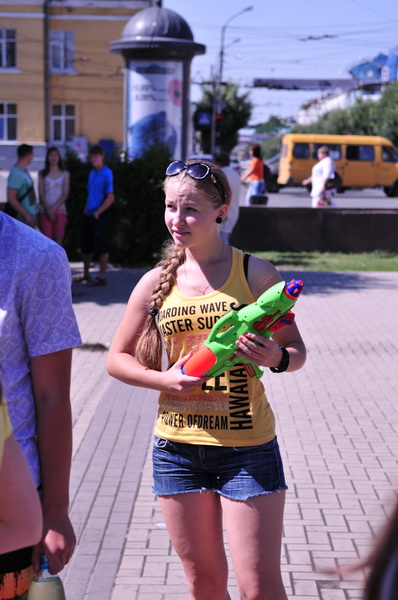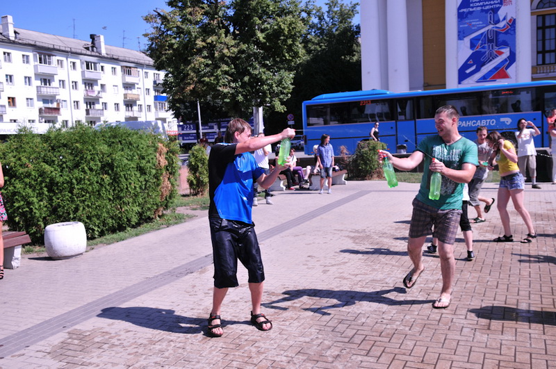 — От жары можно спасаться разными способами. Кто-то забивает холодильник литрами газировки, кому-то привычней окружить себя кондиционерами и вентиляторами. Мы же предлагаем вооружиться водяными пистолетами и спасаться от жары весело! — весело агитировала одна из организаторов экстрим-моба.