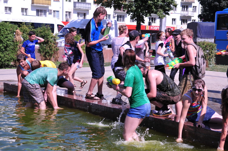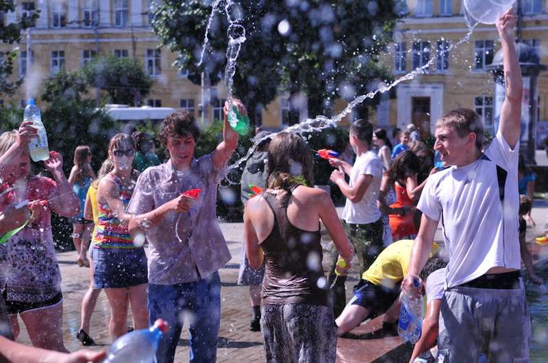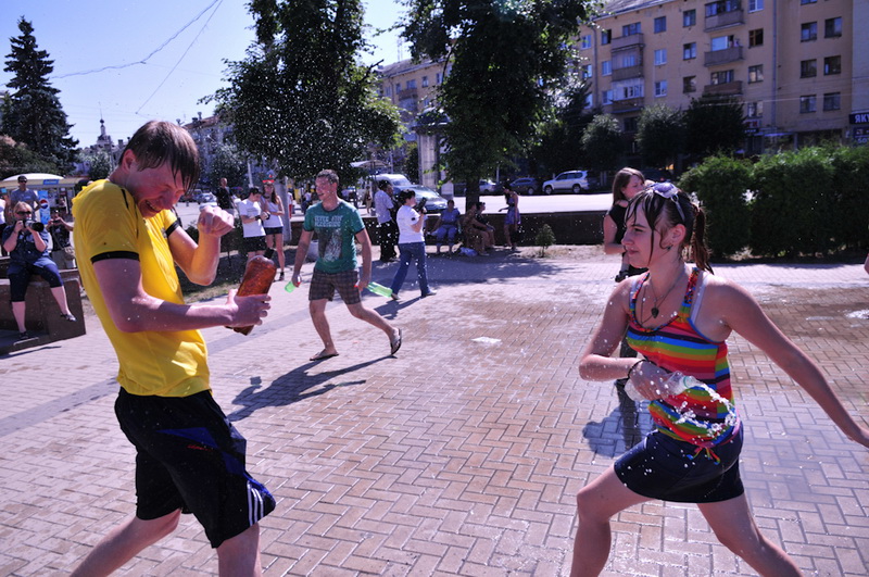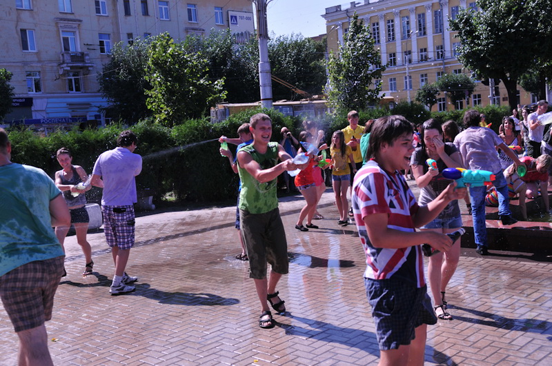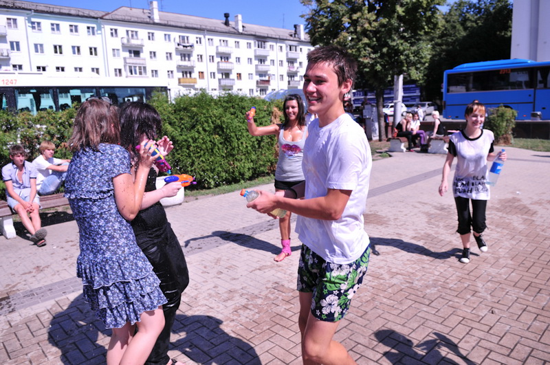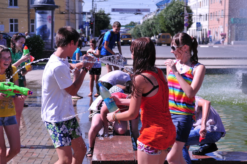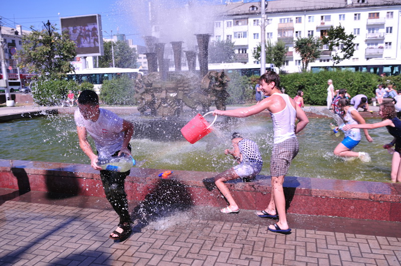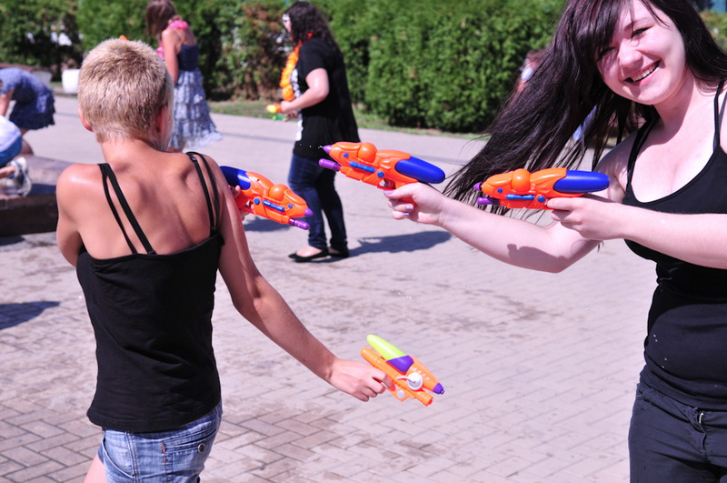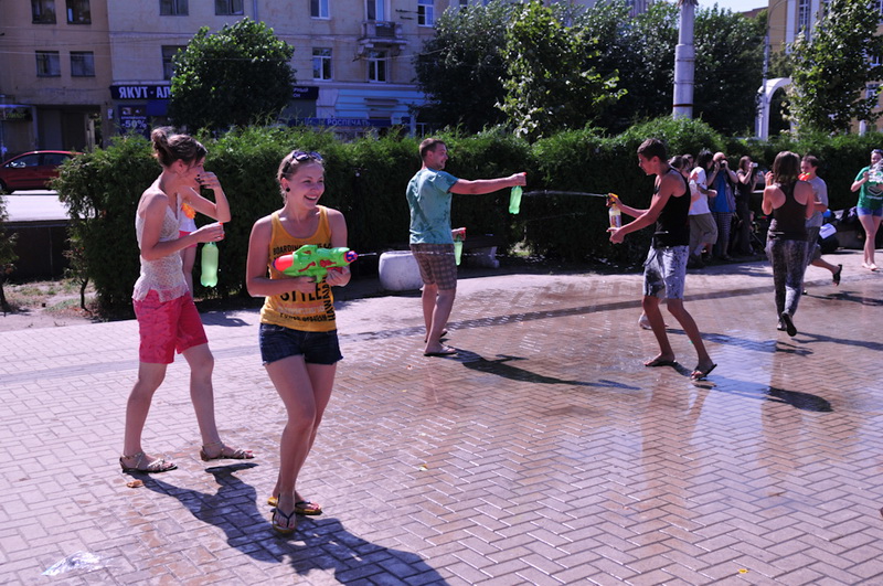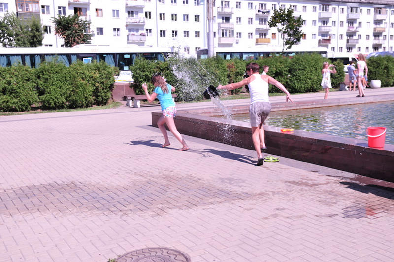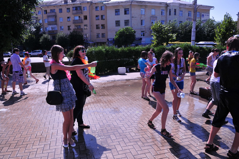 — От жары можно спасаться разными способами. Кто-то забивает холодильник литрами газировки, кому-то привычней окружить себя кондиционерами и вентиляторами. Мы же предлагаем вооружиться водяными пистолетами и спасаться от жары весело! — весело агитировала одна из организаторов экстрим-моба.