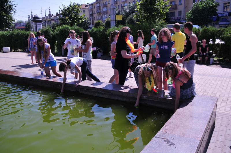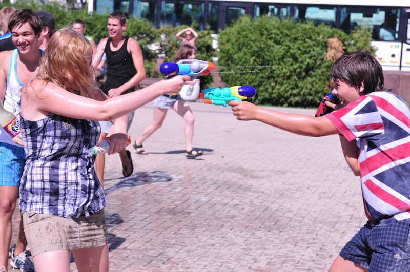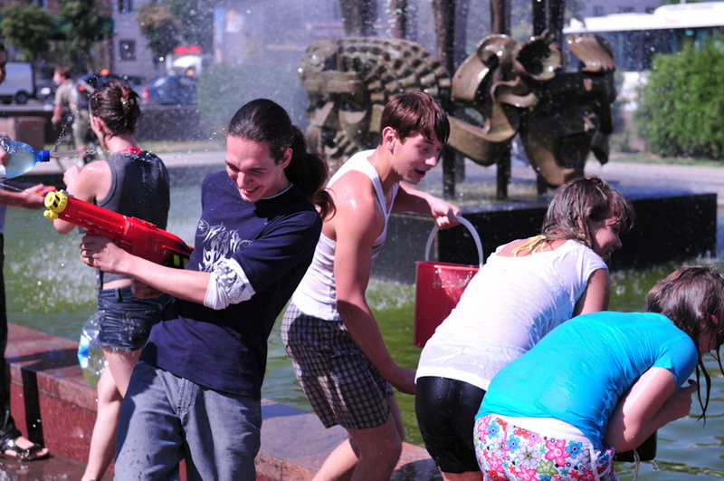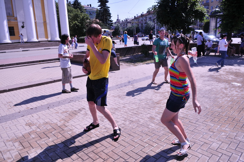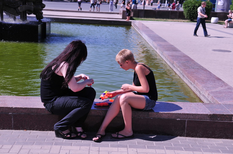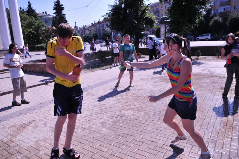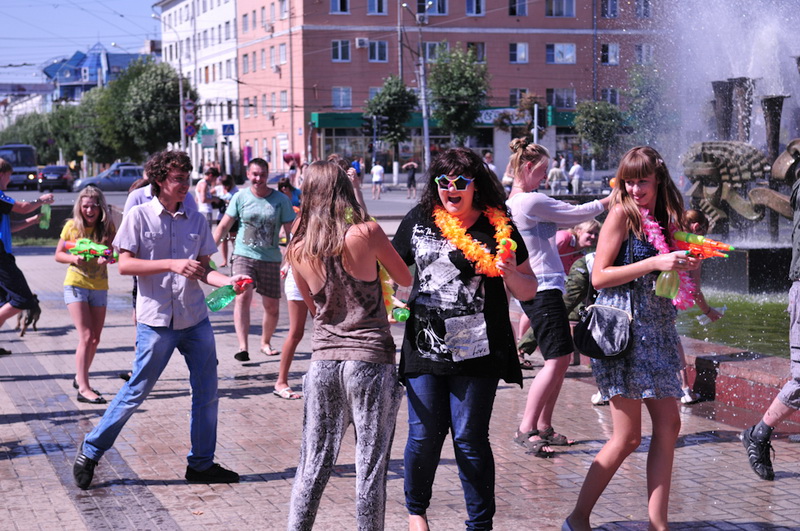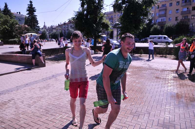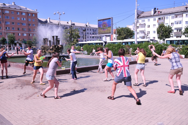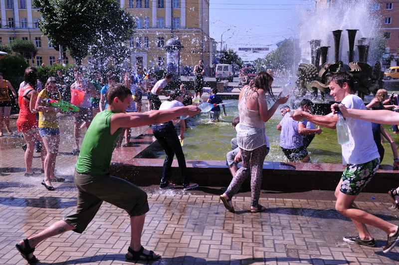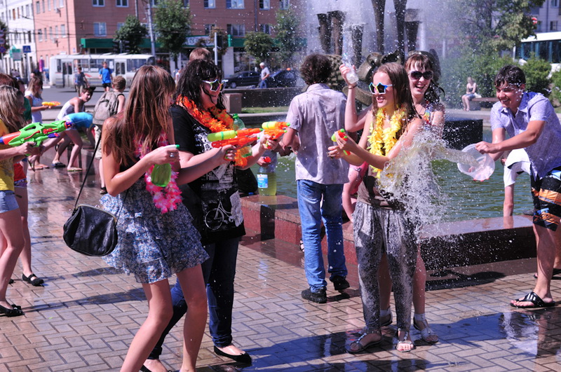 — От жары можно спасаться разными способами. Кто-то забивает холодильник литрами газировки, кому-то привычней окружить себя кондиционерами и вентиляторами. Мы же предлагаем вооружиться водяными пистолетами и спасаться от жары весело! — весело агитировала одна из организаторов экстрим-моба.