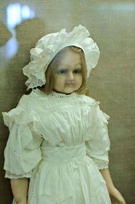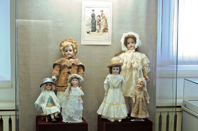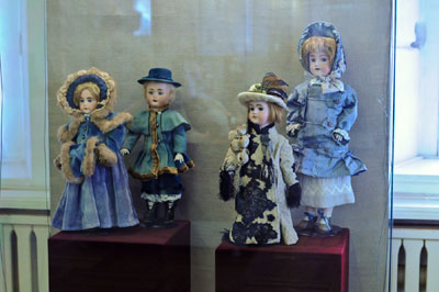 Кстати, в экспозиции есть нижнее кукольное бельё. Зрители обычно видят кукол в верхнем платье, однако на самом же деле их наряд в точности повторял полный комплект одежды молодой барышни или кавалера: панталоны, нижние юбки, платья, блузки. Причём шилось это всё из натурального шёлка, батиста, кружев, и стоило совсем не дёшево. Более того, в магазинах куклы подавались именно в нижней одежде: голышей в стародавние времена не было, ибо даже кукла в обнажённом виде считалась верхом неприличия. Выбрав куклу, покупатель тут же мог подобрать ей одежду: платье, веер, перчатки, туфельки, сумочку, сапожки, шляпку. Если находящаяся в наличии одежда или аксессуары не нравились, то какую-то деталь можно делали на заказ.