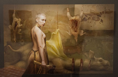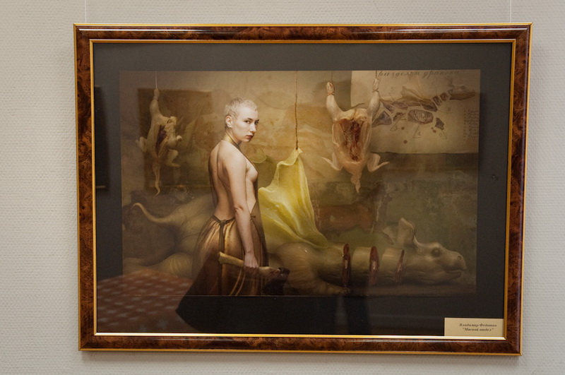 Лингвистическая абстракция в названии (как реализм может стать субъективным?) последовательно продолжается в снимках, представленных в стенах музея, и превращается в абстракцию фотографическую. На одной стене выставочного зала прекрасная монохромная фотографика — чёрно-белые портреты в текстурном пространстве из грубого льна или растерзанных плетёных корзинок. Напротив — богатые изысканные фотокартины, выдающие в авторе поклонника классических полотен фламандских живописцев. Чуть поодаль — фотофантазии со сложным световым решением. Рядом — сюрреалистические девушки на фоне холодильника или монитора. Пока на одной стене пара гоблинов пустились в разнузданный пляс, на другой коротко стриженая особа разделывает тушу дракона: тут шейка, тут грудинка, тут требуха в суп…
