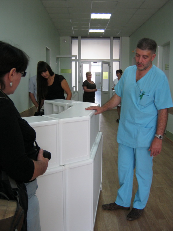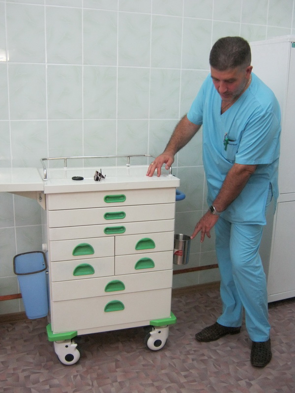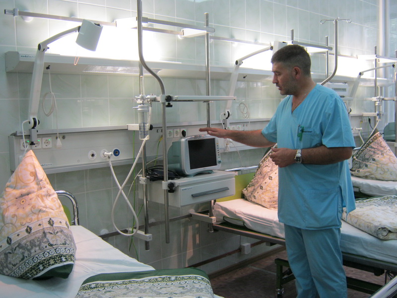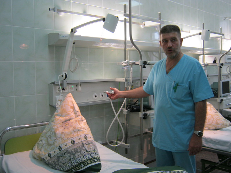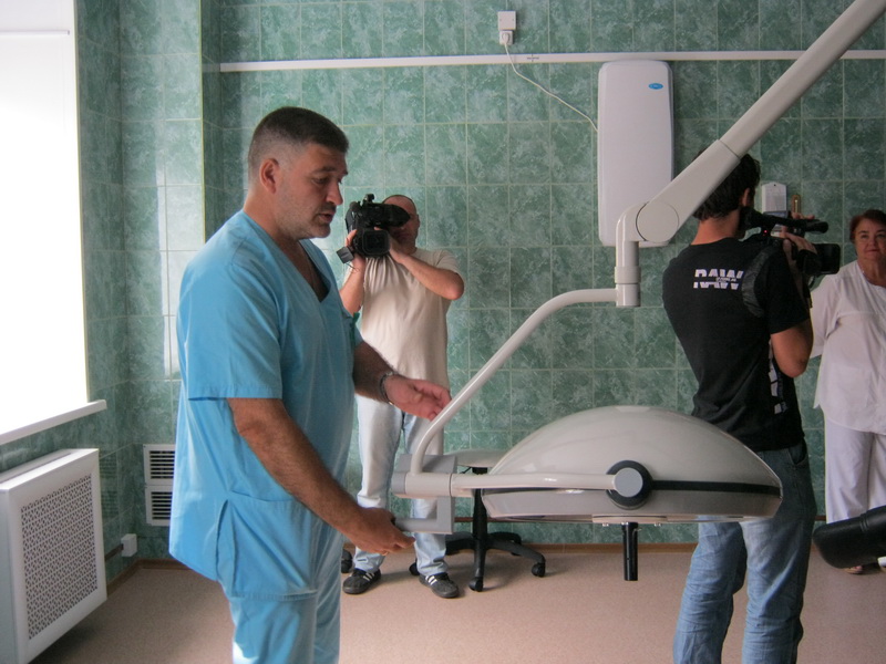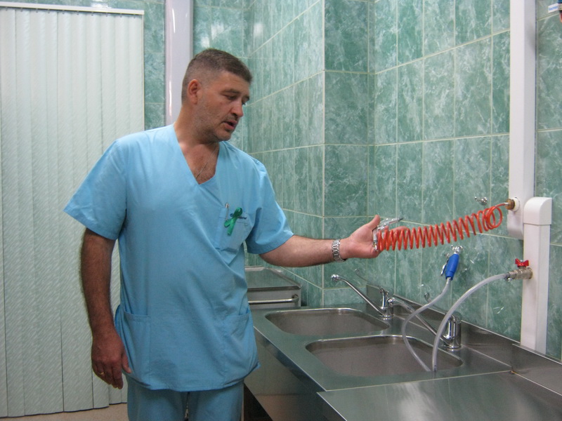 Также установлены современные мойки с импортными водяными пистолетами, которые создают факел распылённой жидкости для промывания инструментов. Для того чтобы высушить инструменты, предусмотрен компрессор. В этом году больница получила для операционных современные лампы.