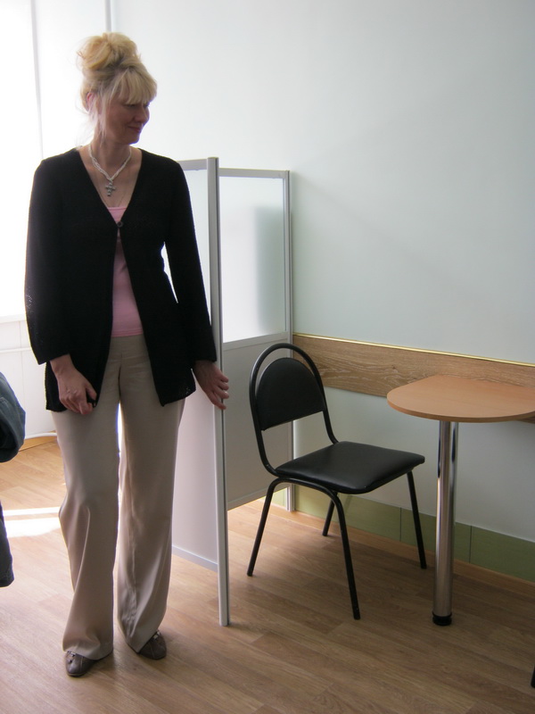 — Врачу часто требуется побеседовать с пациентом. Гинекология — очень деликатная тема, обсуждать которую лучше приватно. В процедурной разговаривать по санитарным правилам нельзя, в палате — неудобно. Мы нашли «офисное» решение: отгородили кабинку, в которой разместили банкетку и два стула. Теперь, находясь, в принципе, в коридоре, беседующие чувствуют себя психологически защищёнными от чужих ушей и взглядов. Чтобы у окружающих не возникало подозрения, что в этой кабинке ведётся какая-то коррупционная деятельность, верхняя часть перегородок прозрачна, — рассказал Александр Миров.