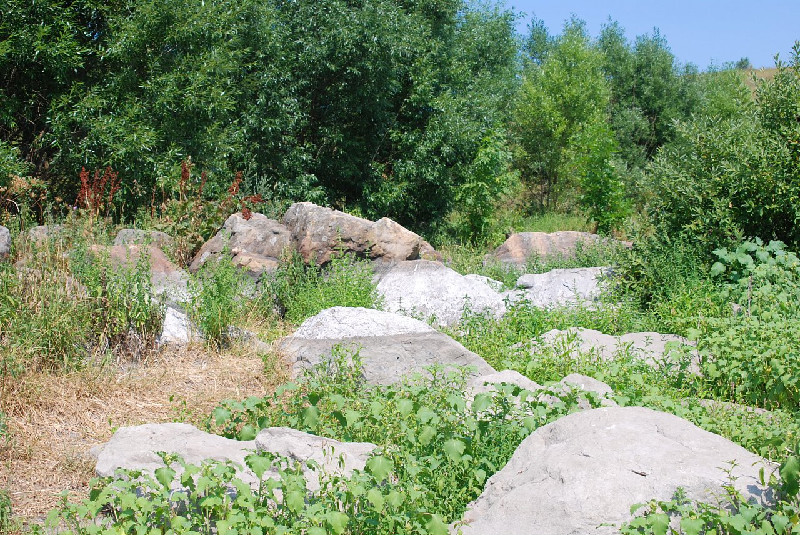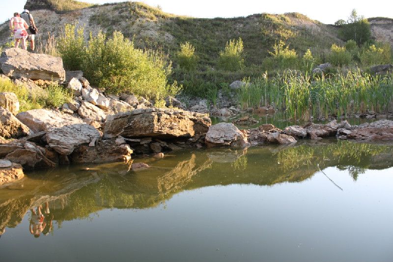 Продолжаем путь к «Синим камням». Чтобы не пройти мимо, лучше идти прямо по сухому руслу Паники. Чудо-река сделает пару поворотов, и вы упрётесь в обширный развал из пятидесяти громадных камней. Самые крупные — в полтора метра высотой и до трёх в длину, весят при этом больше десяти тонн. Валуны лежат здесь испокон веков и в отличие от податливых известняков воздействию талой весенней воды упорно противостоят. Очевидно, возраст камней довольно зрелый, и предки-язычники не могли обделить валуны своим вниманием. Тайных знаков и следов жертвоприношения здесь нет, ведь нацарапать что-либо на глыбах кварцитовидного песчаника (так классифицировали камни геологи) довольно проблематично. Попытки отбить кусочек камня «на память» лучше сразу отмести — кварцит не поддаётся ни молотку, ни времени. Подвластны «Синие камни» лишь размышлениям. Ведь если вспомнить русские сказки, то такие огромные камни всегда служили дорожными указателями, которые, как и современные дорожные знаки, «запрещали», «предписывали», «предостерегали» и «информировали». В пределах Рязанщины подобие «синих камней» можно обнаружить только в одном месте, причём тоже в Милославском районе — у деревни Гремячка в балке Зеркала.