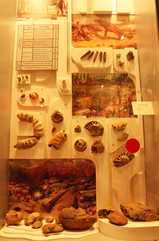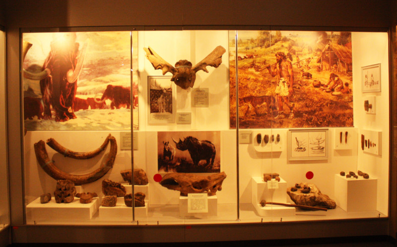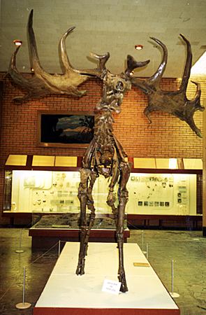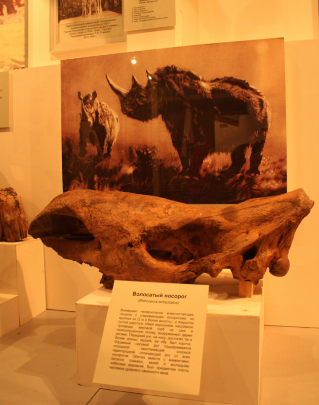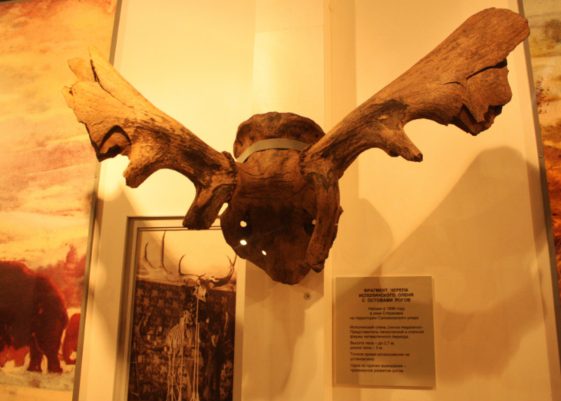 Посетитель палеонтологического музея Москвы, пройдя сквозь залы, выстроенные в очерёдности геологических эр Земли — архея, протерозоя, палеозоя и мезозоя, — зайдёт в последний — в зал Кайнозойской эры. Вместо скелетов динозавров здесь будут останки животных нового образца. Кайнозой — эра млекопитающих, начавшаяся 70 миллионов лет назад и текущая поныне. Вот скелет гигантского безрогого носорога индрикотерия — его нашли в Пакистане. Вот череп эндрюсарха — предка медведей, найденного в Монголии. Рядом скелет более знакомого нам мамонта. Среди экспонатов особо выделяется гигантский большерогий олень. Его рога раскинулись на 2,5 метра, а табличка гласит «Найдет в Сапожковском районе Рязанской области».