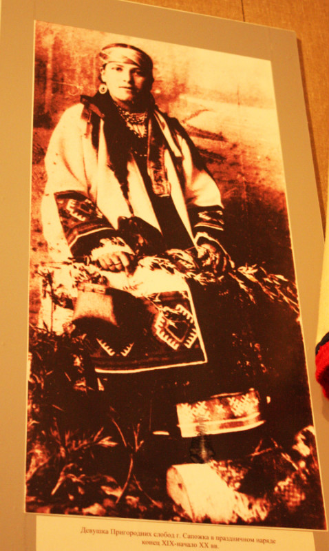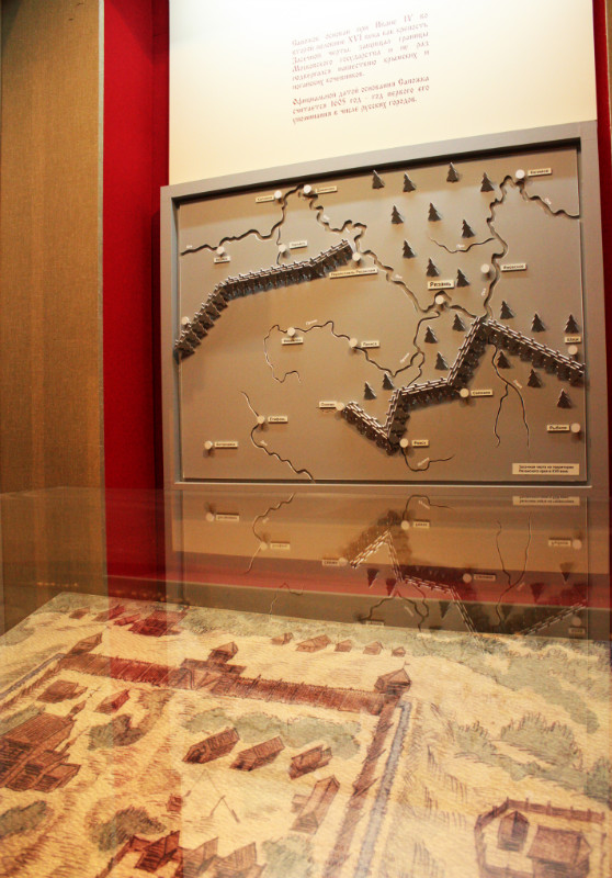 Как возник, чем жил и что хранит городок можно узнать в других залах музея. Ледниковый период с допотопным оленями и мамонтами сменится поздним средневековьем, когда Сапожок появился на первых географических картах. По самым достоверным историческим источникам, Сапожок возник в XVI веке при Иване IV в черте оборонительной Ряжско-Сапожковской засеки, входившей в систему оборонительных рубежей Московского государства. А основой для возникновения города стало «древнее Сапожковское городище и многочисленные окружающие это городище древнерусские селища». А так как Сапожок был Московского государства, то нередко подвергался набегам и разорению со стороны ногайских татар, потому как находился на пути от Рязани к Москве.