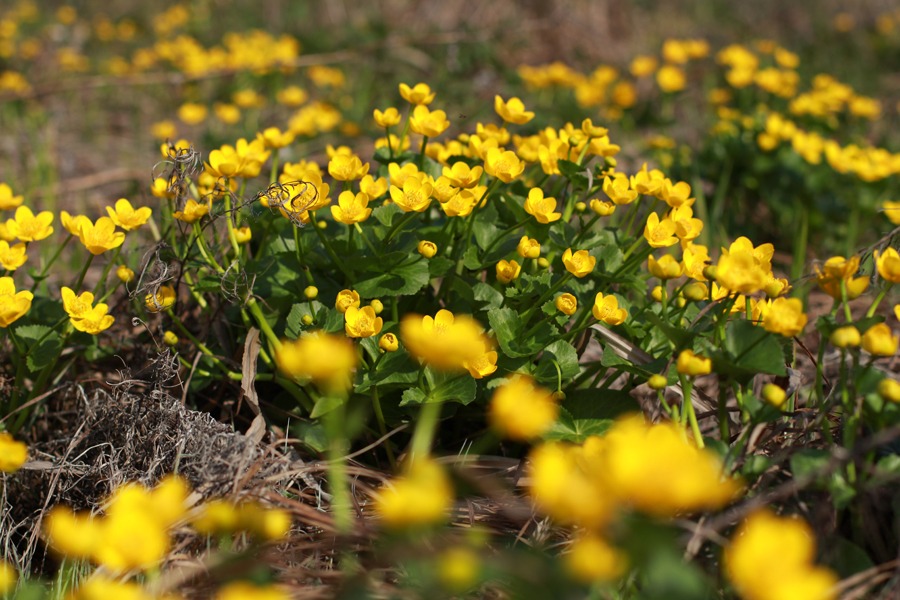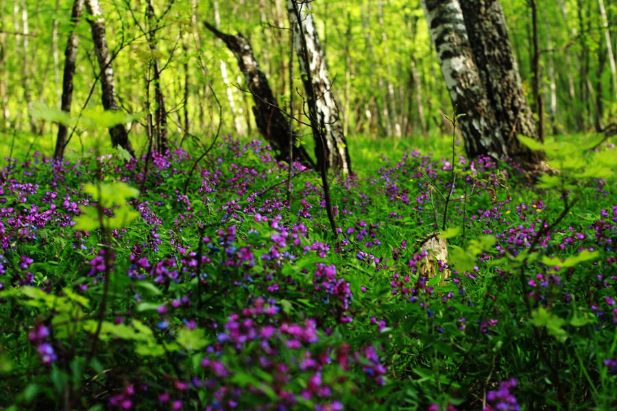 Но пока, на границе апреля и мая, когда люди редко заходят в лес (ведь грибам и ягодам ещё не сезон), зелень травы заметно уступает оттенкам жёлтого, лилового, розового, синего. Удивительный ковёр эфемероидов образуют сначала лимонно-жёлтые скопления ветреницы лютичной, гусиного лука и чистяка весеннего с лиловыми куртинками хохлатки Галлера и фиалки душистой. Неделю спустя власть переходит к сочевичнику, яснотке пурпурной, лютику кашубскому, будре плющевидной, первоцвету и медунице, а сырые днища байраков пятнами золота оживляют россыпи калужницы болотной. Многие виды весенних первоцветов за века нашли применение в медицине и хозяйстве, обросли легендами и преданиями.