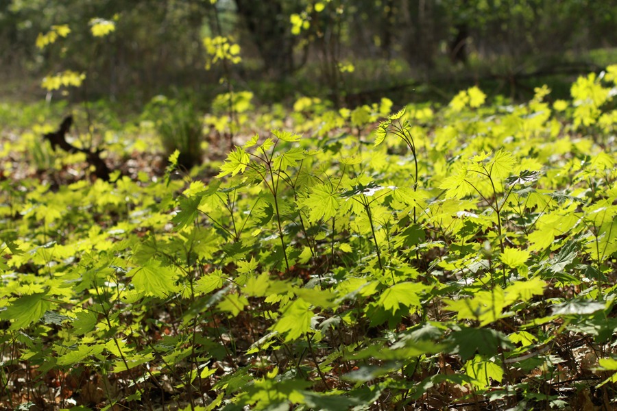 Весной всего на несколько недель под пологом широколиственного леса появляется красочный ковёр из богатого разнотравья. В кратчайшие сроки весенние эфемероиды должны успеть прожить полноценную жизнь: дать побег из многолетнего корневища, сформировать листья, зацвести, дождаться шестиногих опылителей, отцвести, оставить семена и уйти на покой до следующей весны. Столь выразительная спешка имеет веские основания. Как только на деревьях появятся листья, под пологом леса возникнет полумрак. Жизненная стратегия первоцветов — это попытка зацепиться за очень кратковременный, почти эфемерный ресурс — одновременное наличие света и воды. После схода снега в почве имеется избыток влаги, но ещё проникает свет. Уже к середине мая от ценнейшего ресурса не останется и следа, и власть перейдёт к теневыносливым терпимцам — пролеснику, ландышу, сныти, копытню, купене и волосистой осоке.