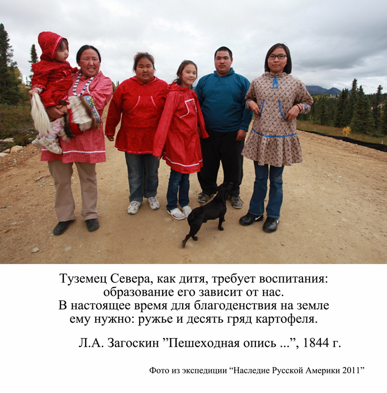Загоскин с горечью говорил о продаже земли на «том свете», не зная ни о золоте, ни о нефти. Для него это была частичка души. И туземцы, называвшие его «косяк», что было исковерканным словом «казак», были для Лаврентия Алексеевича такими же русскими, как и он сам. Ведь всего за сто лет владения Америкой туземцы в полной мере переняли русские традиции и обычаи. В 2011 году экспедиция Русского географического общества «Наследие Русской Америки» дала поразительные результаты. Современные жители Аляски, коренные эскимосы и атабаски, хотя и говорят по-английски, но до сих пор используют в речи более сотни слов русского происхождения. Они наливают «молокук» и «чаюк» в «чашкак», намазывают «маслак» на «клибак» с помощью «нужика», а заслышав звон «колоколака», не растеряв привитого русскими православия, эскимосские «матуски» и «бабуски» повязывают на голову «платуки» и отправляются в храм читать «славие».
