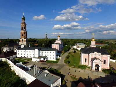 Монастырь занял выгодное положение на высоком мысу междуречного плато, крутые склоны которого образуют уступ долины Оки и левый борт глубокого оврага. Того самого, что отделяет родниковую дубраву от монастыря, создавая некоторые трудности в подходе к купели.
