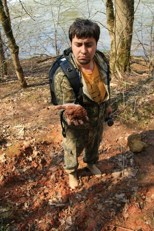 Горизонт верейских глин в Рязанской области лежит повсеместно на большой глубине и выныривает к поверхности, давая прикоснуться к себе лишь здесь, на Осетре. А повсеместно поверх глин покрывает толстый слой пористого и побитого трещинами известняка известного под именем Каширского горизонта. Выше известняков бронирует ещё один глинистый слой. На разных участках этот слоёный пирог из двух глинистых коржей с начинкой известняка лежит на глубине до трёхсот метров. И это настоящий стратегический резервуар, потому как в пористом известняке сокрыты громадные запасы чистейшей артезианской воды. Она не уходит вглубь земных недр, утыкаясь в водоупор цветных верейских глин. Именно в Каширский горизонт забуривают водоносные скважины. Возможность увидеть эти чудесные глины есть разве что у шахтёра. Но простому обывателю природа даёт особый шанс: глубинный слой на границе Рязанской и Московской областей в Серебряно-Прудском округе Подмосковья вдруг выныривает к поверхности, давая себя потрогать на берегу Осетра.