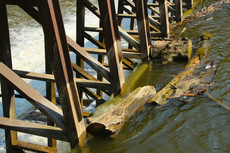 Прогулка по плотине, над которой выстроен металлический мост, позволит перебраться на высокий и крутой правый — рязанский — берег Осетра. Здесь же при желании и знании, куда именно идти и смотреть, можно посетить своеобразный природный геологический музей, где в склоне, на который опирается рязанское крыло плотины, обнажён разрез невероятных по расцветке горных пород. В зависимости от индивидуального цветовосприятия, времени года и увлажнения земной поверхности, здесь можно различить голубовато-зелёные, кирпично-красные цвета с голубыми, жёлтыми и фиолетовыми прослоями.