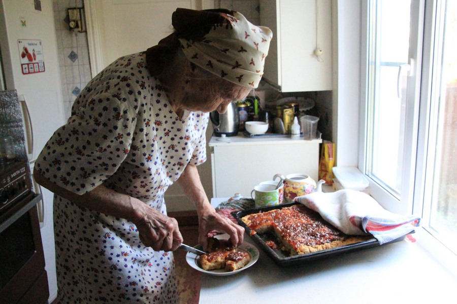 …Салимя Абдурахмановна пригласила к себе в дом и, несмотря на преклонный возраст, не упускала возможность подшутить над скромными гостями с фотоаппаратами, подучивая, как открыть дверь и включить свет. Затем усадила за стол и нарезала от души пирог, щедро покрытый слоем яблочного повидла: