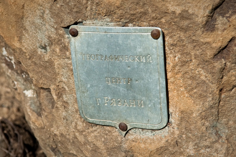 Географический центр был определён сравнительно недавно. Обнаружил его немецкий фотодизайнер Ханс Крёгер, член мюнстерской группы художников, прибывших в Рязань в рамках обмена культурным опытом между городами-побратимыми. В 2002 году, используя спутниковые снимки, Ханс Крёгер рассчитал географические центры Мюнстера и Рязани и при поддержке школьников и учителей Свободного лицея провёл акцию «Связанные землёй». В Рязань была привезена капсула, наполненная землёй, взятой в географическом центре Мюнстера, которую рязанцы во главе с Крёгером закопали в географическом центре Рязани. Аналогичная капсула, но уже с рязанским содержимым, отправилась в немецкий город-побратим.