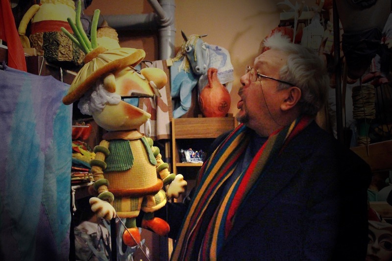 «По-моему, я похож на всех кукол театра сразу. Потому что когда ты работаешь с художником, придумывая персонажа, ты сам их проживаешь. Приходишь в цех, каждую берёшь в руки, пытаешься понять, как она говорит, двигается, поэтому приходится вживаться. Ты проходишь через неё, а она — через тебя, тут следы и остаются. В куклы в детстве серьёзно не играл. Я думал, что буду военным, как папа. В играх я был то лётчиком-истребителем, то танкистом, то из стульев сооружал тракторы, танки, кабины самолётов. Игрушки тогда были достаточно редким явлением, поэтому я играл, к примеру, с патронами и пулями. Одна пуля, когда я изображал самолётик, разорвалась. В ковре была большая дыра, а на лбу царапина. Я долго вытягивал нити ковра, чтобы скрыть дырку, а дырку на лбу прикрывал волосами».