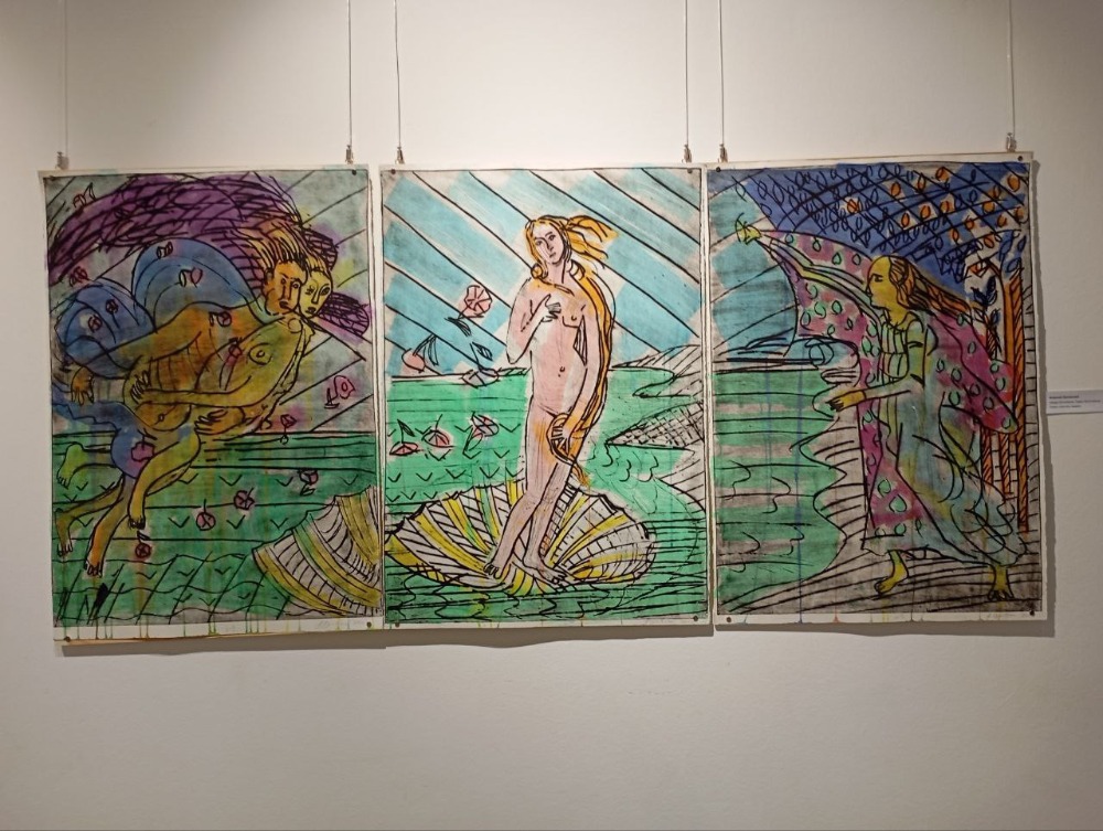 Среди экспонатов - живописные полотна, посвящённые Галерее «Сад» от семьи Мессереров, Античному восприятию мира от Татьяны Петровой, Казимиру Малевичу от Владимира Богданова, Александру Пушкину от Миши Шапиро. Большое место занимают серии графических работ, посвящённые Леонардо да Винчи от Алексея Орловского, Рене Магритту от Андрея Соболева, Искусству Суми-э от Ирины Щечкиной, Франсиско Гойе от Юлии Резниковой и другие.