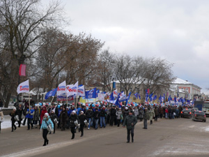 Две сотни флагов с символикой «Единой России», а также лозунги: «Голосуй — не комплексуй», «Молодёжь выбирает будущее», «Быть гражданином — значит быть избирателем» и другие — пронесли участники шествия по маршруту от площади Соборной по улице Советской. Завершилось мероприятие митингом около ФСК «Лидер», где выступила кандидат в депутаты Госдумы VI созыва от партии «Единая Россия» по списку Рязанской региональной группы Татьяна Наумова. Она отметила положительную тенденцию увеличения интереса к избирательному процессу среди молодёжи.