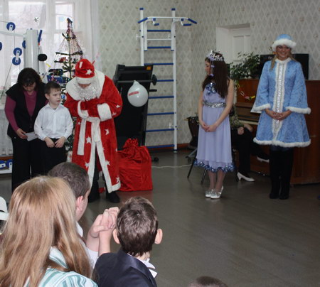 Ребята показали гостям, чему они уже успели научиться: первоклашки стали утятами и станцевали танец под знакомую каждому мелодию, ученицы второго класса превратились в лёгких снежинок, в гости пришёл даже снеговик с бубном. А в завершение праздника, конечно же, пришли Дед Мороз и Снегурочка прямо из Великого Устюга. Ребята так их ждали, готовили свои стихотворения. Дедушка с внучкой поиграли с детьми в весёлые интересные игры и подарили всем сладкие подарки.