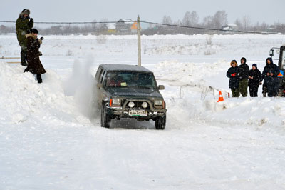 Организаторы автоклуба давно выяснили, что любой праздник без состязательного момента скучен и сер. Поэтому 23 февраля и 8 марта было отмечено владельцами внедорожных транспортных средств так же, как и Новый год и Рождество — в соревновании.