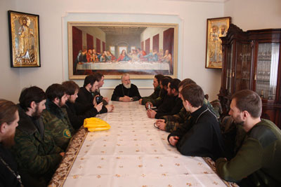 После приветственного слова митрополита Павла гости проследовали в трапезную, где в тёплой и непринуждённой обстановке священнослужители смогли пообщаться с правящим архиереем Рязанской митрополии. Владыка Павел поведал гостям о своих молодых годах и службе в армии, а также поделился своим священническим и архипастырским опытом. В свою очередь, священнослужители из других епархий рассказали о том, с чем они уже познакомились на Рязанской земле, о своих впечатлениях, задали владыке вопросы личного характера.
