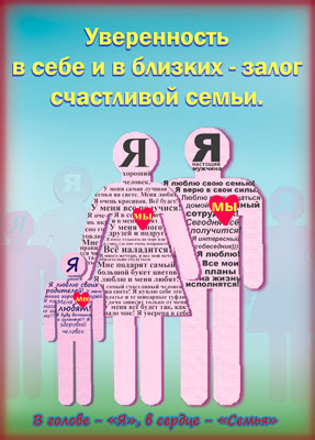— Смысл моей работы заключается в том, что уверенность в себе (в своём здоровье, чувствах, силах и возможностях) и в близких людях — это важная часть счастливой семьи. Буква «Я», часто используемая в моем плакате, символизирует уверенность в себе, которая формируется в голове. Видя её на плакате, зритель невольно назовет себя и задумается о себе. Слово «Мы» — это символ семьи и близких людей, которые находятся всегда в нашем сердце. Фраза «В голове — «Я», в сердце — «Семья» — является коротким выводом вышенарисованному и написанному, — поясняет Мария. — Позитивно относиться к жизни — это важная задача в современном обществе. Уверенность в своих силах и в важности своей персоны на планете дают нам возможность брать от жизни лучшее — радоваться ей, заводить семью и дарить новую жизнь, а также работать, творить и воплощать, оставляя след в истории.