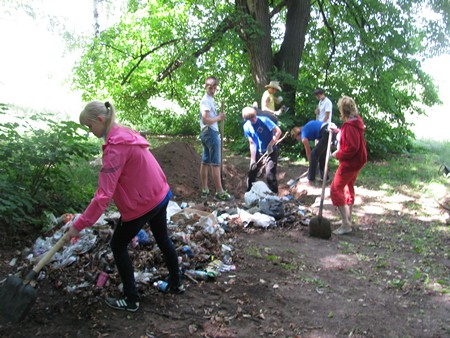 - Во время экспедиции по побережью реки Проня сотрудники корпоративной газеты «Панорама РНПК» поделились с юными натуралистами, как необходимо подать информацию о корпоративном субботнике, чтобы в нём приняло участие как можно большее количество людей, почему фото и литературные конкурсы о природе способствуют поддержанию порядка и чистоты, какие инструменты используют журналисты для формирования экологической культуры среди сотрудников предприятия. В ходе мониторинга русла реки была обнаружена стихийная свалка в липовой роще на окраине села Засечье. Юные натуралисты и журналисты закопали пищевые отходы и другой мусор с коротким периодом распада в землю, а пластиковые бутылки, пакеты, осколки посуды и мебели, требующие специальных условий утилизации, собрали в мешки для мусора и вывезли на Рязанскую городскую свалку. На наведение порядка в липовой аллее ушло более двух с половиной часов напряженной работы.