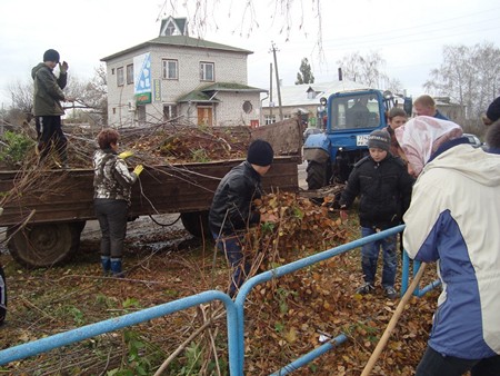 К памятнику павшим воинам пришли учителя и учащиеся Стенькинской школы, представители общественности и все те, кому хочется, чтобы каждый уголок малой родины выглядел ухоженно и красиво, сообщает Участники обрезали ветки кустарников, пилили старые деревья, скашивали и сгребали траву и листья, грузили всё это в тележки, которые предоставило отделение «Стенькино» ООО «Авангард».