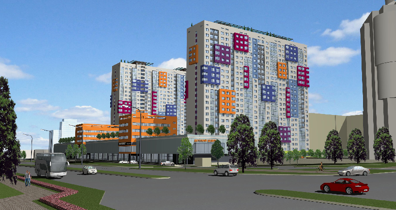 жилого комплекса «Вертикаль». Строительство ведёт группа компаний «Новый город». «Вертикаль» включает в свой архитектурный состав два 23-этажных многоквартирных жилых дома общей площадью 68 113 квадратных метров, рассчитанных на 1000 семей. Проектом предусматривается двухуровневая подземная автостоянка, многоуровневый паркинг и детский сад.