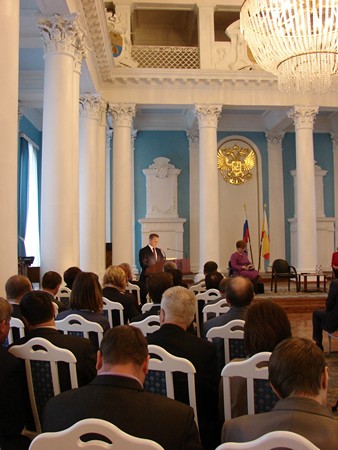— На сегодня разработана и принята вся основополагающая законодательная база, необходимая для развития области, — сказал Аркадий Фомин. — Сегодня в работе и Государственной Думы, и регионального парламента могут принимать участие представители непарламентских партий, открыты интернет-приёмные, введена прямая трансляция заседаний Думы в сети Интернет.