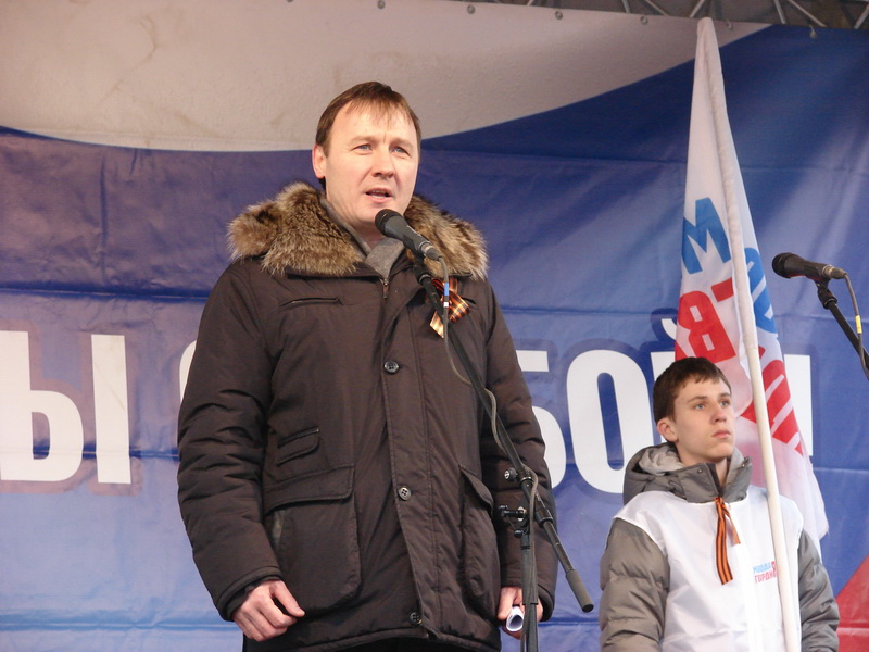— На центральной площади города собрались политические партии, общественные объединения, ветераны, молодёжь. Всех нас объединило неравнодушное отношение к той ситуации, которая происходит в нашей братской соседней стране с нашим братским украинским народом. Я сам родом из Украины, и мне небезразлично, что происходит с моими близкими и родными. То, что пишут сегодня украинские СМИ, — они лживо говорят то, чего нет на самом деле, — заявил Александр Чайка.