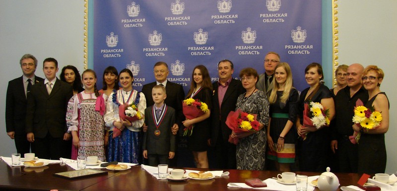 13 мая в региональном правительстве состоялась встреча губернатора Рязанской области Олега Ковалёва с победителями и участниками (а также их наставниками и помощниками) XIII молодёжных Дельфийских игр России, проходивших со 2 по 7 мая в Волгограде. Губернатор поздравил всех участников встречи, которых ему представил министр культуры региона Виталий Попов.