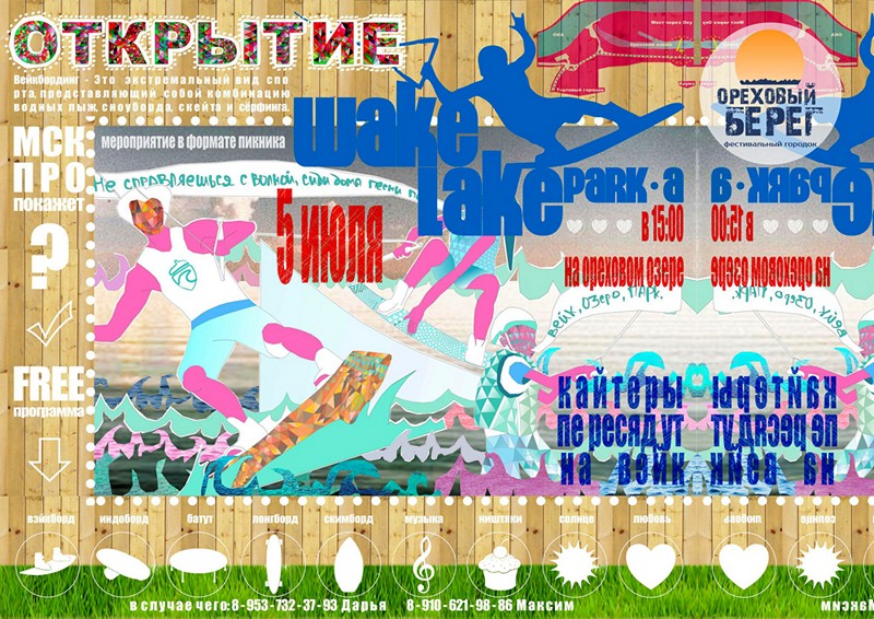 В субботу 5 июля в 15.00 на «Ореховом Берегу» открывается самый настоящий «Wake Lake Park». Вейкбординг — экстремальный вид спорта, сочетающий в себе элементы воднолыжного слалома, акробатику и прыжки. В день открытия вас ждут: мастер-класс от продвинутых вейкбордистов, бесплатное катание для всех желающих от 14 лет, прохладительные напитки и канапе, а так же немало сюрпризов. Теперь и в Рязани есть чем заняться летом любителям зимнего катания на досках.