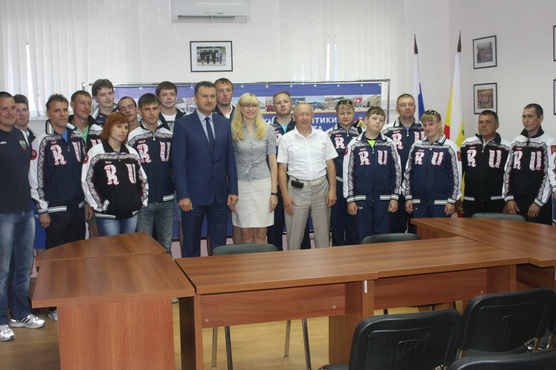 В составе нашей делегации более 30 сельских спортсменов, которые на Х Всероссийских летних сельских спортивных играх в Воронеже будут выступать в соревнованиях по волейболу, настольному теннису, перетягивании каната, борьбе на поясах, городошном спорте и характерных для сельских игр состязаниях дояров, косарей, механизаторов. Честь нашей области в соревнованиях механизаторов и косарей будут защищать жители села Тырново Пронского района Николай Барыкин, Михаил Некрасов, Надежда Некрасова, Юрий Медведев. Мария и Анна Гореловы из села Просечье Александро-Невского района выступят в соревнованиях дояров. В состязаниях спортивных семей за честь Рязанщины постоит семейство Озаровых из села Треполье Михайловского района. В заключении участники встречи сфотографировались на память.