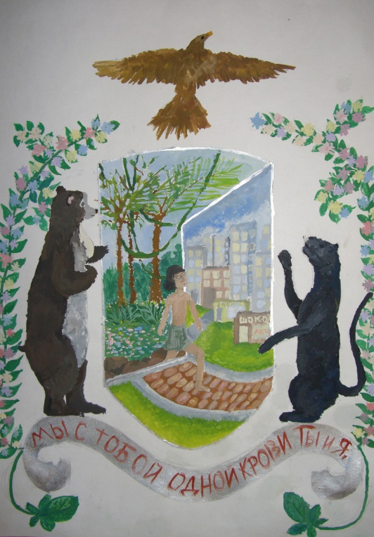 — В основе моей работы лежит идея перехода Маугли из диких джунглей в каменные. Это своего рода герб будущего города, где предстоит жить Маугли. Я даже специально изучала, как правильно рисовать гербы. Поэтому по бокам картины у меня изображены Багира и Балу, которые помогали Маугли в диких джунглях и теперь станут его помощниками в каменном городе. Я надеюсь, что и мой рисунок поможет больным детям, — рассказала Даша Беликина.