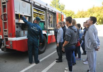Затем школьники посетили пожарную часть №1, где ребятам рассказали о пожарной технике и оборудовании. Они получили возможность посидеть в новой пожарной автоцистерне и почувствовать себя настоящими огнеборцами, мчащимися на выезд.