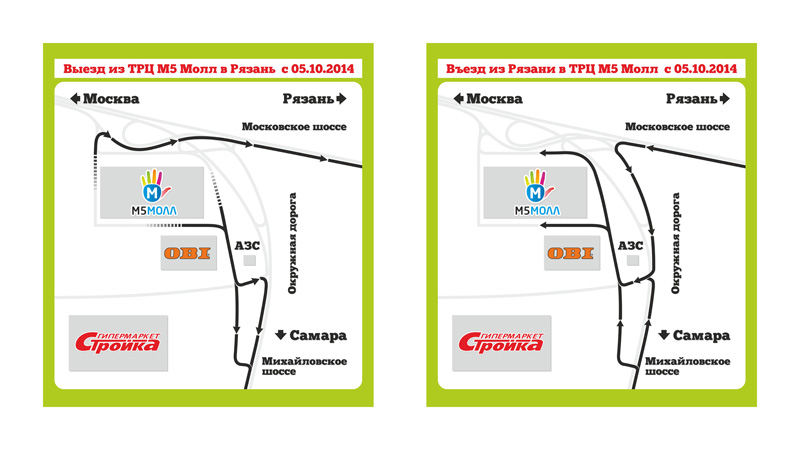 Выезд с территории торгово-развлекательного центра «М5 Молл», гипермаркетов ОБИ и «Стройка» осуществляется: