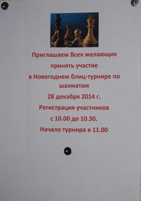 В шахматном клубе «Интеллект» на улице Высоковольтной 28 декабря пройдёт Новогодний блиц-турнир по шахматам, в котором могут принять участие все желающие. Регистрация участников с 10.00 до 10.30. Начало турнира в 11.00.