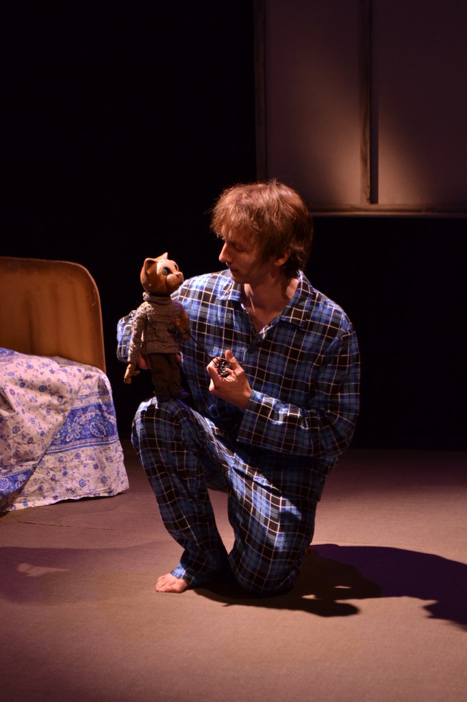 В главной роли — артист Рязанского театра кукол Сергей Маврин, в роли кота — кот. Спектакль не имеет ограничений по возрасту.