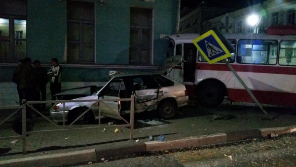 Ночью в центре Рязани ВАЗ-2114 не уступил дорогу автобусу