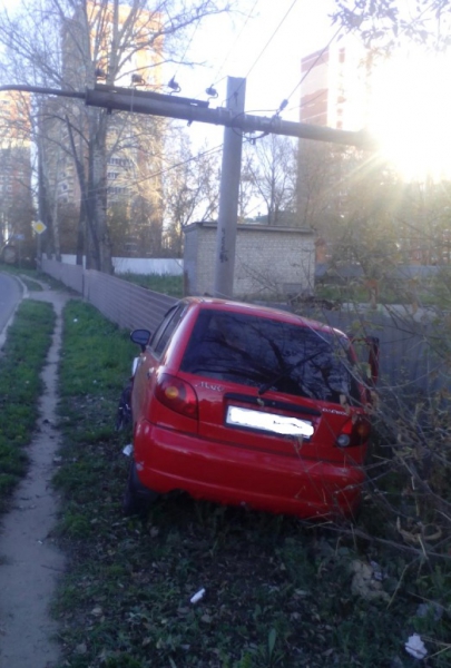 На Михайловском шоссе автоледи на Daewoo Matiz врезалась в опору ЛЭП