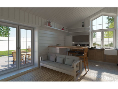 — это новый стандарт домашнего комфорта для тех, кто готов жить полной жизнью. Используя готовые инженерные стандарты, воплотившие в себе лучшие мировые практики коттеджного домостроения, и инновационные строительные материалы, можно построить коттедж любой архитектуры и планировки в зависимости от пожеланий заказчика. Типовой проект «Первый» в первую очередь ориентирован на молодую семью. Коттедж в стиле скандинавского сельского дома включает в себя единую зону гостиной и кухни, две спальни и небольшую уютную веранду. Срок его возведения в среднем составит два месяца.