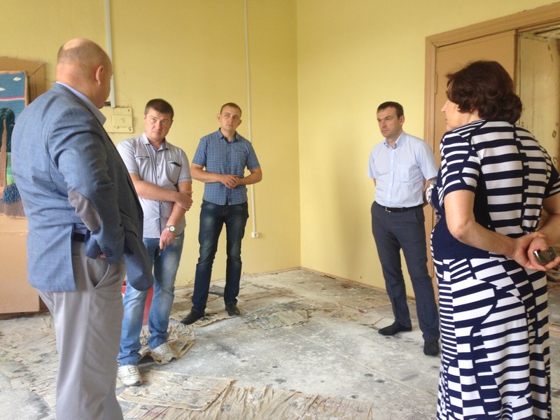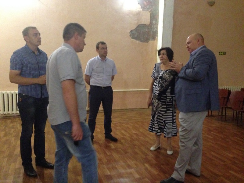 Андрей Красов подчеркнул, что реконструкция ДК выполняется согласно графику, полностью отремонтирован фасад здания, полным ходом идут кровельные работы.