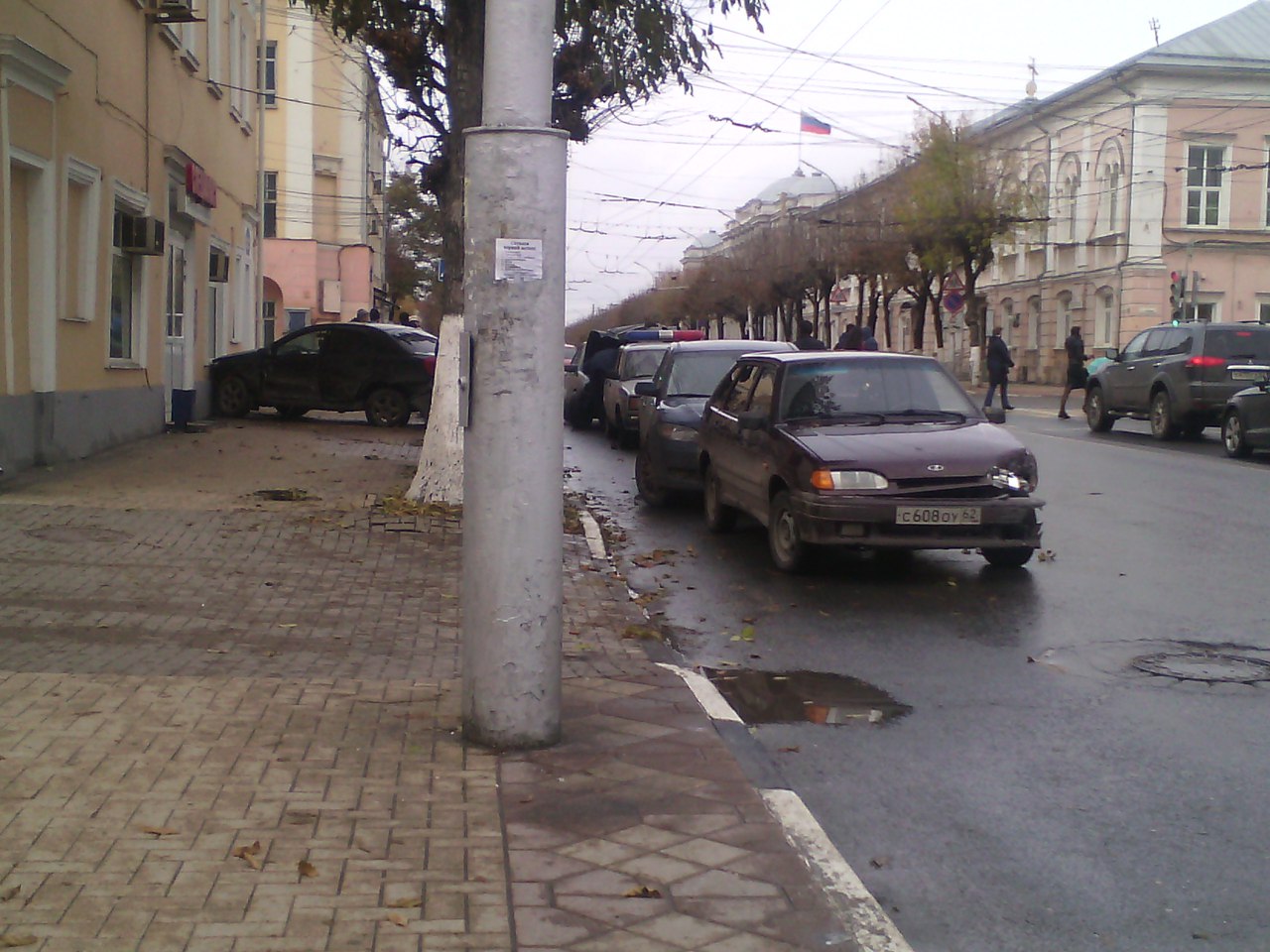 В центре Рязани столкнулись три автомобиля, один из них врезался в дом