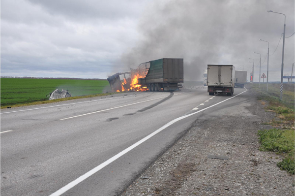 подробности смертельного столкновения двух грузовиком под Пронском, случившегося 1 ноября. По уточнённым данным, примерно в 09.40 на 241-ом километре федеральной трассы М6 «Каспий» 56-летний житель Волгограда, ехавший на грузовом автомобиле Volvo со стороны Тамбова, по предварительной информации, совершил касательное столкновение с грузовой автомашиной «КамАЗ» из Московской области. После этого случилось столкновение с грузовиком DAF под управлением 61-летнего москвича. В результате происшествия Volvo и DAF загорелись, при этом водитель Volvo погиб. Водитель второй фуры с серьёзными травмами был госпитализирован в больницу. Оба транспортных средства сгорели.